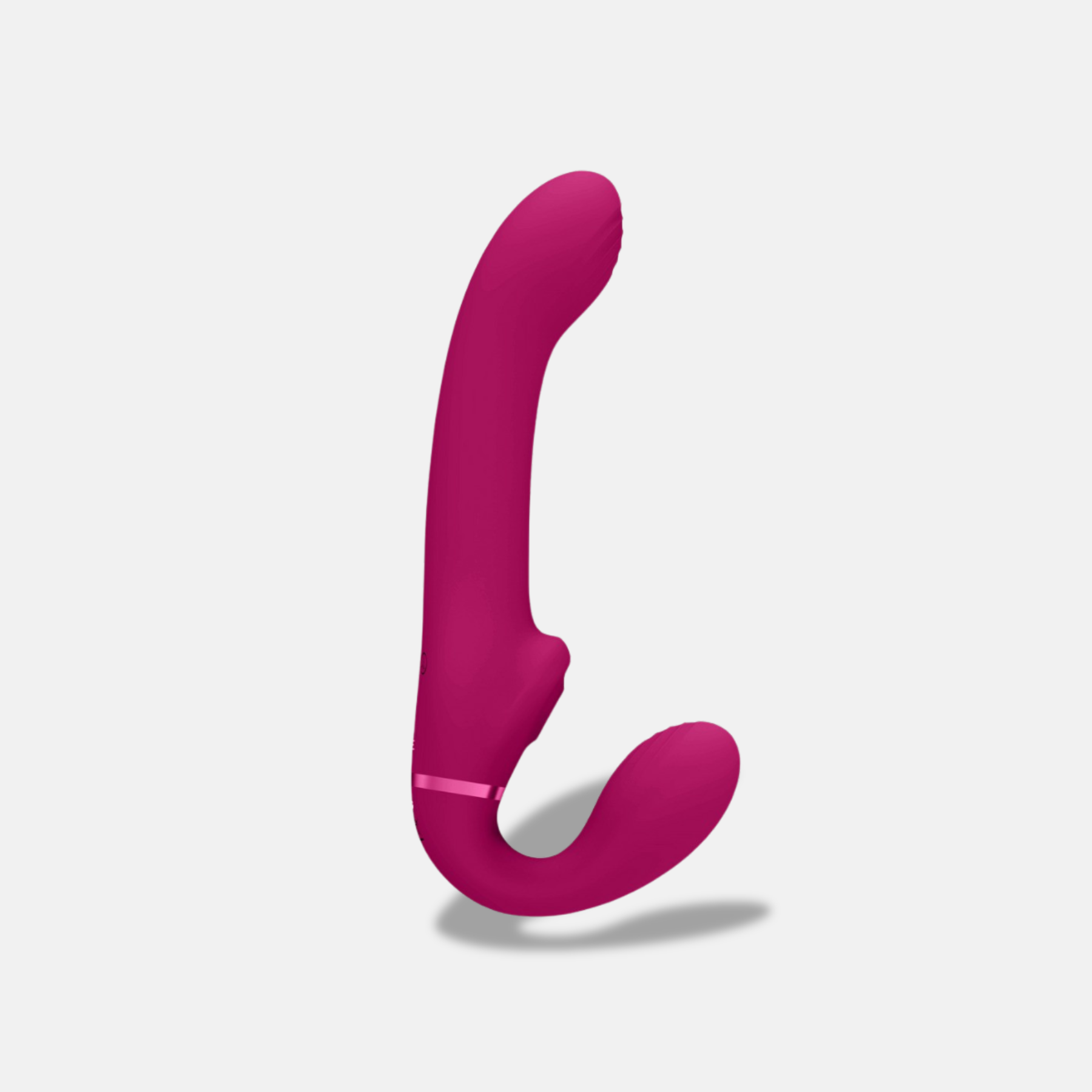 Juguete íntimo sin arnés con doble estimulación interna y externa para un placer intenso y envolvente.